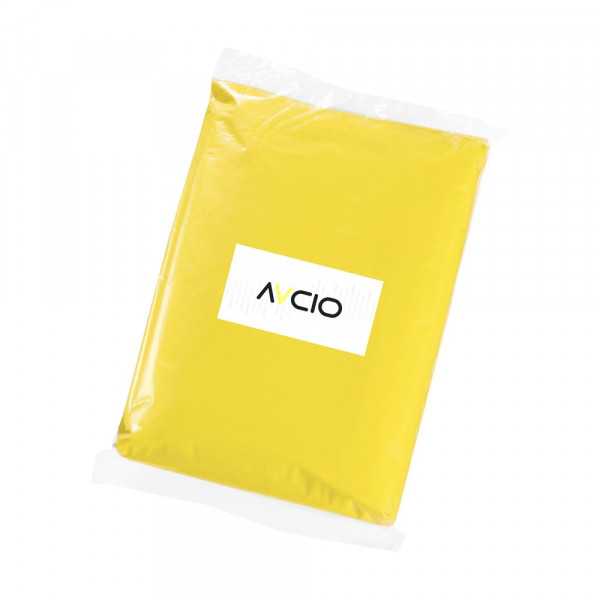 Transparente, leichte Poncho aus Kunststoff in einem Plastikbeutel. Aufgeklappte Maße, gemessen ohne Haube: 100 x 120 cm.