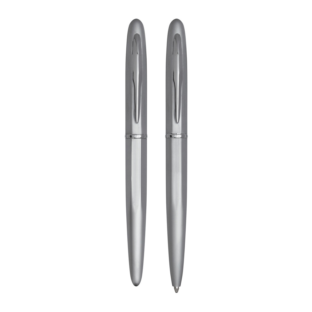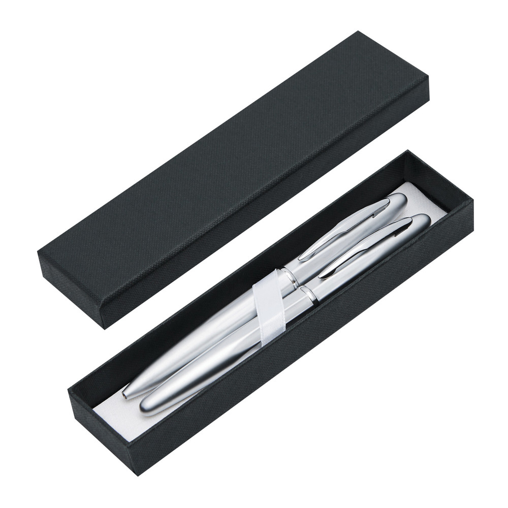 Schreibset COMTESSE, 2-teilig: bestehend aus Kugelschreiber mit Drehmechanismus (blauschreibend) sowie Tintenroller mit Verschlusskappe mit Clip (schwarzschreibend), beide Schreibgeräte mit Metall-Schaft, in Box