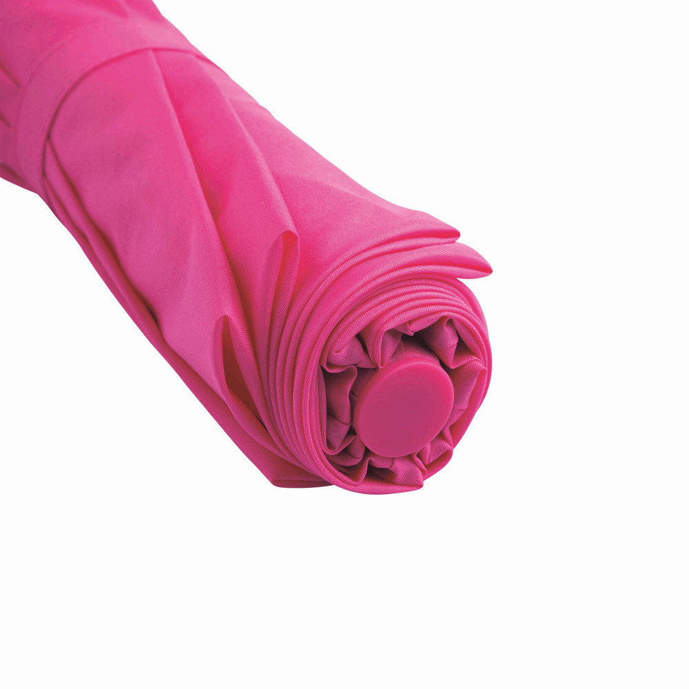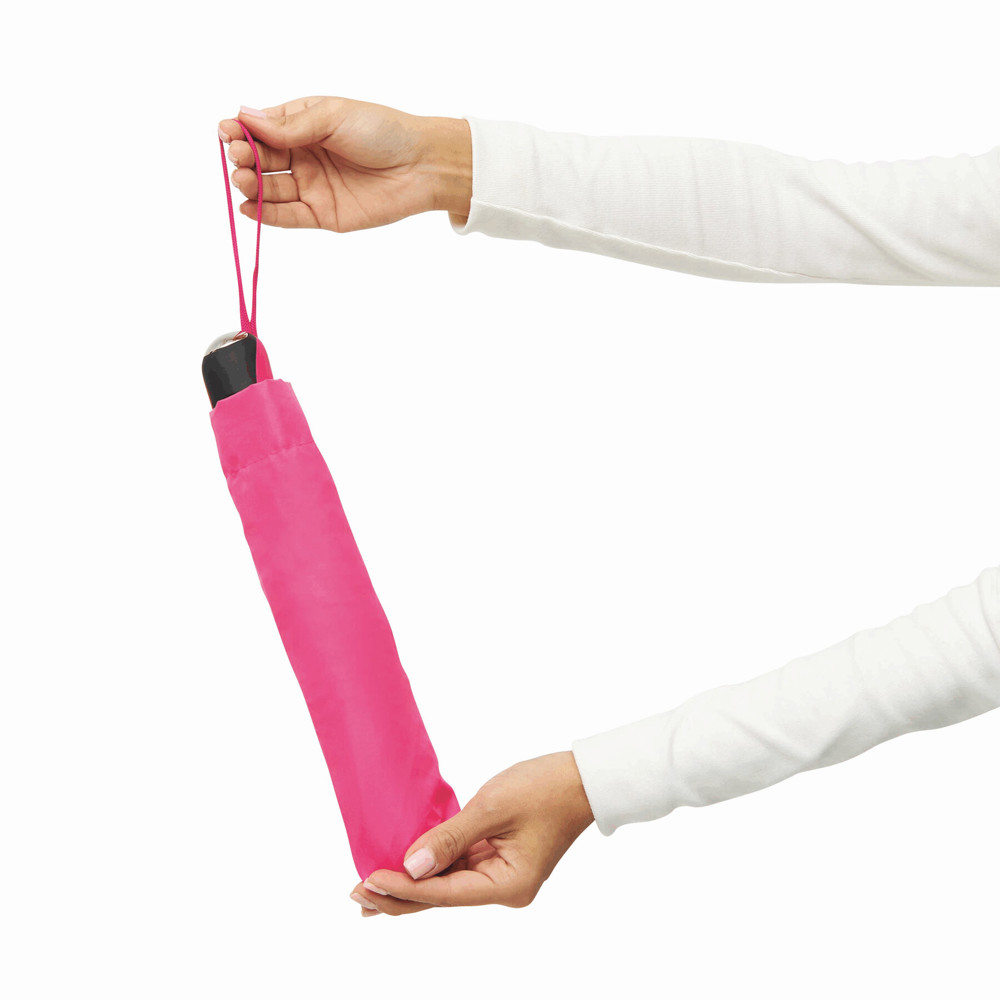 Automatik-Taschenschirm COVER: 3-teiliger Metallstock, Metallspeichen und -tips, gummierter Griff, Polyester-Pongee-Bespannung und -Hülle, Schließband mit Klettverschluss