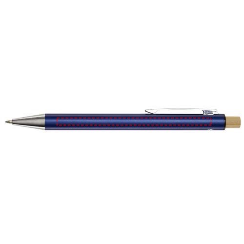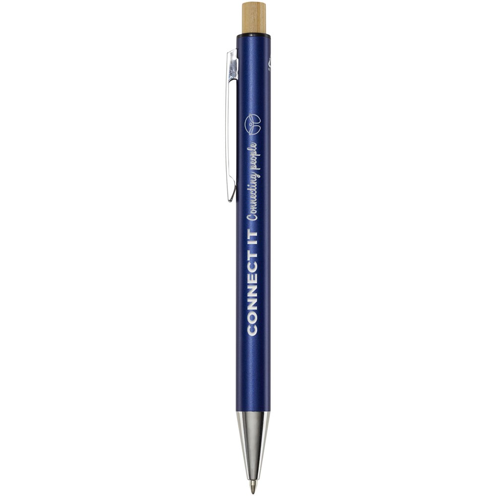 Der Cyrus Kugelschreiber ist aus recyceltem Aluminium hergestellt, was weniger Energie benötigt als die Herstellung von Aluminium aus Rohstoffen. Es reduziert außerdem die Abfallmenge auf Mülldeponien und trägt dazu bei, natürliche Ressourcen zu schonen und Treibhausgasemissionen zu reduzieren. Druckknopf ist aus Bambus gefertigt. Tintenfarbe: Schwarz. Schreiblänge: 800 Meter. Spitzengröße: 1,00 mm.