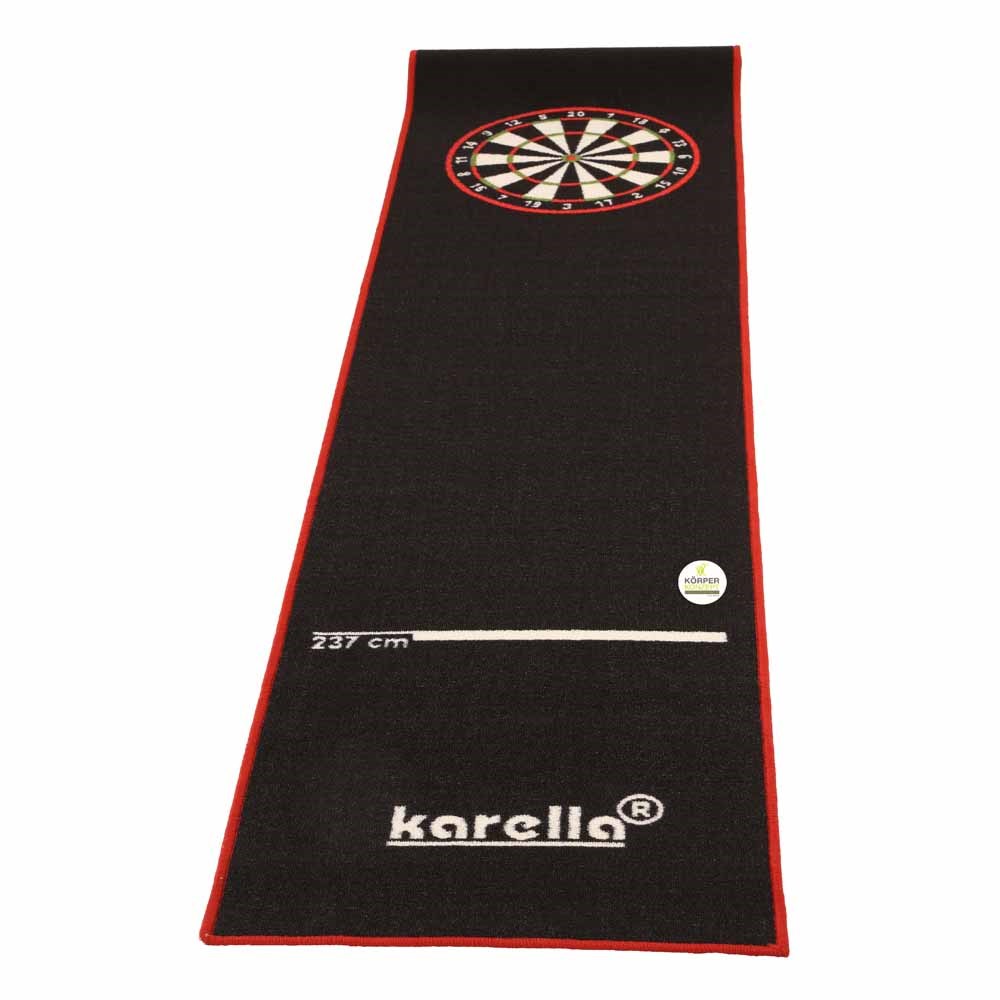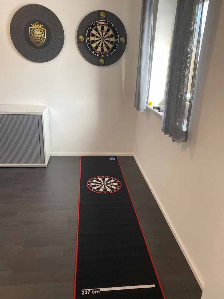Die Matte entspricht in ihrer Größe sowie Qualität allen Wettkampfvoraussetzungen. Diese Premium Dartmatte dient nicht nur als Abstandsmarkierung für Steel- und Softdart, sondern schützt gleichzeitig den Boden sowie herunterfallende Dartpfeile vor Beschädigung.