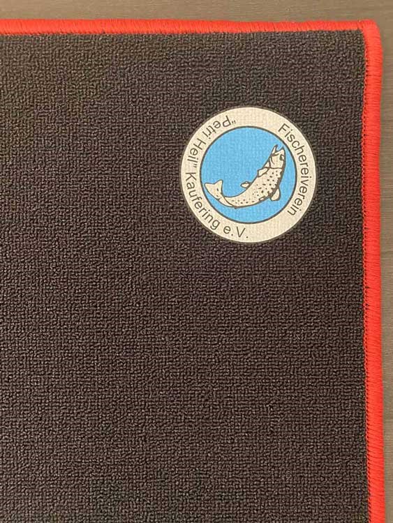 Die Dartmatte Premium Velour inklusive 4c Werbeanbringung an einer Position ca. 8,0 x 8,0 cm. Eine größere Werbefläche ist auf Anfrage möglich.