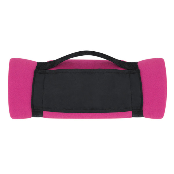Decke 130 x 160 cm in verschiedenen hellen Farbtönen. Aus Polarfleece-Material von 200 g/m2 mit Antipilling-Behandlung und Tragegriff mit Klettverschluss aus weichem Polyester.