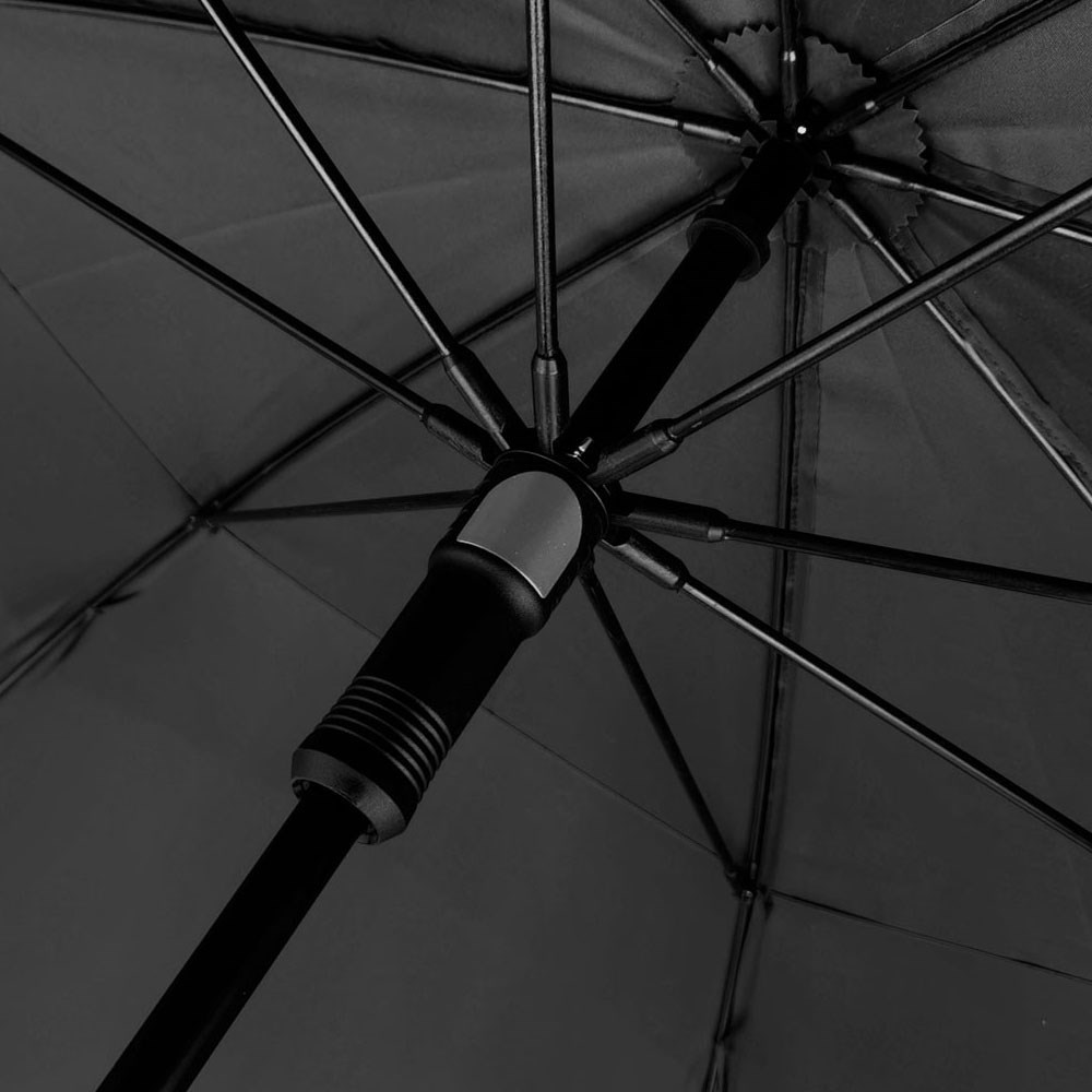 Golfschirm DRIVE - OKTAGON® - OVERsize XXL - Windproof-Ventilations-System Die Ventilationsöffnungen in der Bespannung gleichen den Überdruck unter dem Schirmdach bei aufkommendem Wind aus und beugen somit dem Umklappen des Gestelles vor. Schwarzes, flexibles Fiberglasgestell mit reversiblen Fiberglasspeichen für eine hohe Belastbarkeit und Flexibilität bei stärkerem Wind - stabiler 16mm Fiberglasstock - exklusiver TPO/PU-Golfschläger-Gummigriff - schwarze Kunststoffstockkappe - schwarze Kunststoffspeichentips- Polyester-Pongee-Bespannung mit schmutz- und wasserabweisender Hydrophob-Ausrüstung - komfortables Klettverschlussband - Speichenlänge ca. 80cm - Durchmesser ca. 140cm - Länge ca. 104cm - Gewicht ca. 650g
