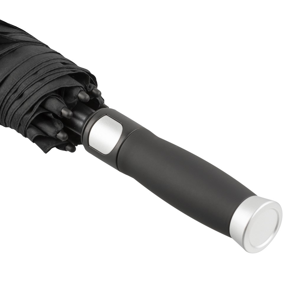 Golfschirm EAGLE VENT - OKTAGON® - GOLFsize - Automatik - Windproof-Ventilations-System Die Ventilationsöffnungen in der Bespannung gleichen den Überdruck unter dem Schirmdach bei aufkommendem Wind aus und beugen somit dem Umklappen des Gestelles vor. Praktische Automatik zum leichten Öffnen - schwarzes, flexibles Fiberglasgestell mit reversiblen Fiberglasspeichen für eine hohe Belastbarkeit und Flexibilität bei stärkerem Wind - stabiler 14mm Fiberglasstock - schwarz/silberfarbener, gerader, 'soft-touch' Kunststoffgriff mit integrierter Automatik-Auslösetaste in silberfaben - schwarze Kunststoffstockkappe - schwarze Kunststoffspeichentips- Polyester-Pongee-Bespannung mit schmutz- und wasserabweisender Hydrophob-Ausrüstung - komfortables Klettverschlussband - Speichenlänge ca. 75cm - Durchmesser ca. 135cm - Länge ca. 97cm - Gewicht ca. 715g