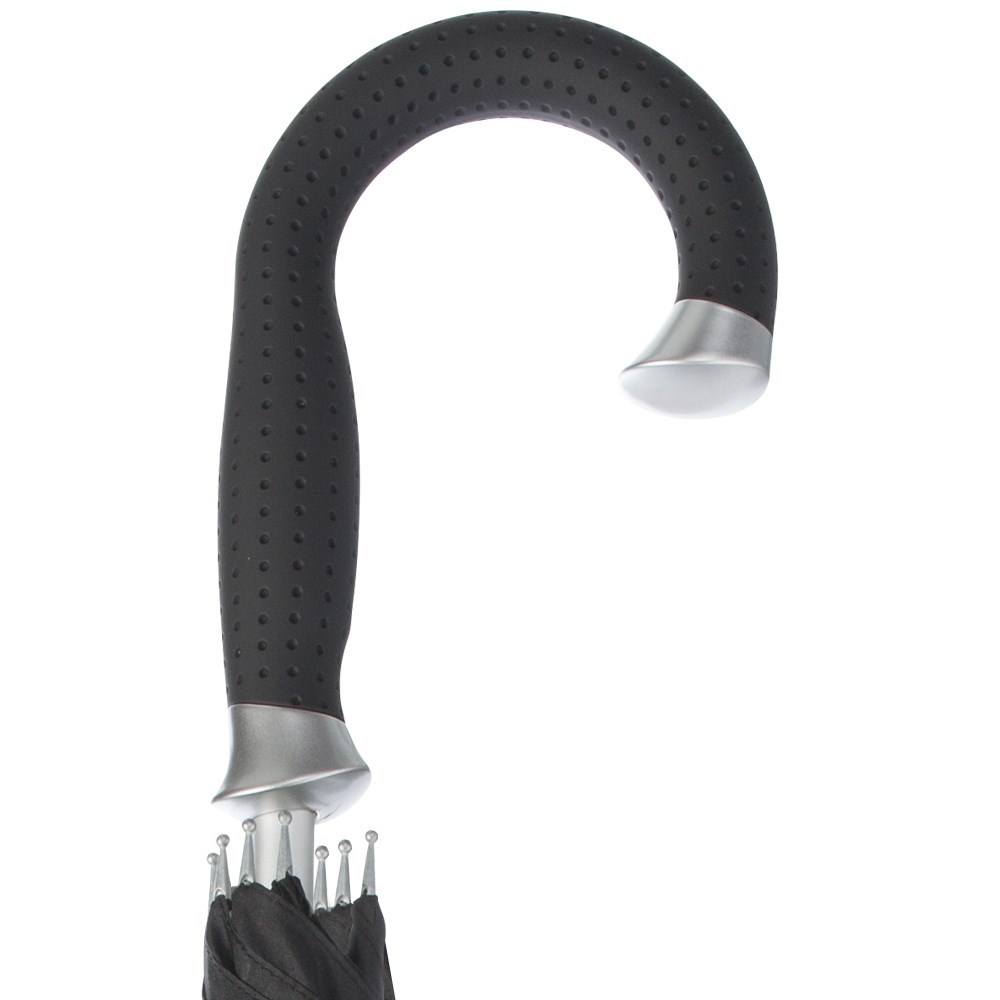 Stockschirm MERKUR - OKTAGON® - REGULARsize - Automatik - Windproof-System Praktische Automatik zum leichten Öffnen - schwarzes, flexibles Fiberglasgestell mit reversiblen Fiberglasspeichen für eine hohe Belastbarkeit und Flexibilität bei stärkerem Wind - stabiler 14mm Aluminiumstock - exklusiver, gebogener Ergonomie-Rundhakengriff - Material-Mix - schwarz profiliert mit aluminium-farbenen Abschlüssen, mit angepasster Stockspitze, aluminium-farbene Speichentips - Polyester-Pongee-Bespannung mit schmutz- und wasserabweisender Hydrophob-Ausrüstung - komfortables Klettverschlussband - Speichenlänge ca. 60cm - Durchmesser ca. 105cm - Länge ca. 87cm - Gewicht ca. 500g