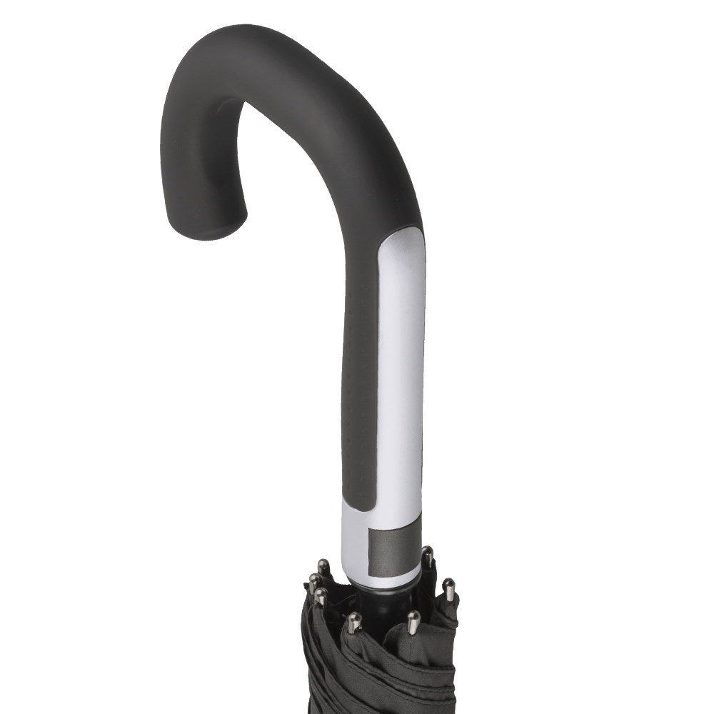 Stockschirm FAMIR - OKTAGON® - REGULARsize - Automatik - Windproof-System Praktische Automatik zum leichten Öffnen - schwarzes, flexibles Fiberglasgestell mit reversiblen Fiberglasspeichen für eine hohe Belastbarkeit und Flexibilität bei stärkerem Wind - stabiler 14mm Aluminiumstock - exklusiver, gebogener Ergonomie-Rundhaken-Griff in 'soft-touch' schwarz/aluminiumfarben - mit integrierter Automatik-Auslösetaste, Kunststoff-Kappe mit 'anti-slide' Gummi-Spitze in schwarz, 'gunmetal'-farbene Speichentips,- Polyester-Pongee-Bespannung mit schmutz- und wasserabweisender Hydrophob-Ausrüstung - komfortables Klettverschlussband - Speichenlänge ca. 60cm - Durchmesser ca. 105cm - Länge ca. 83cm - Gewicht ca. 520g