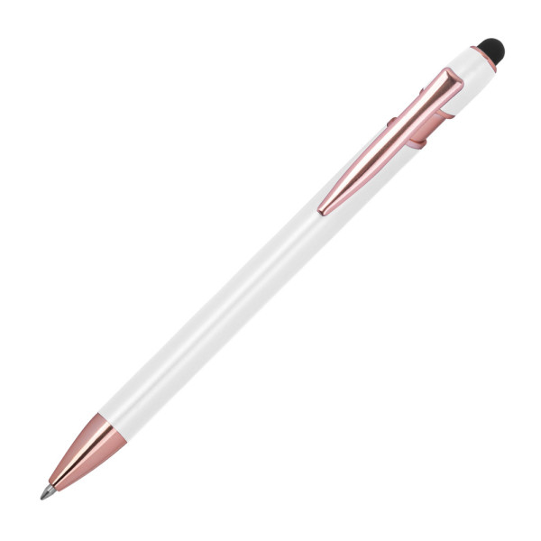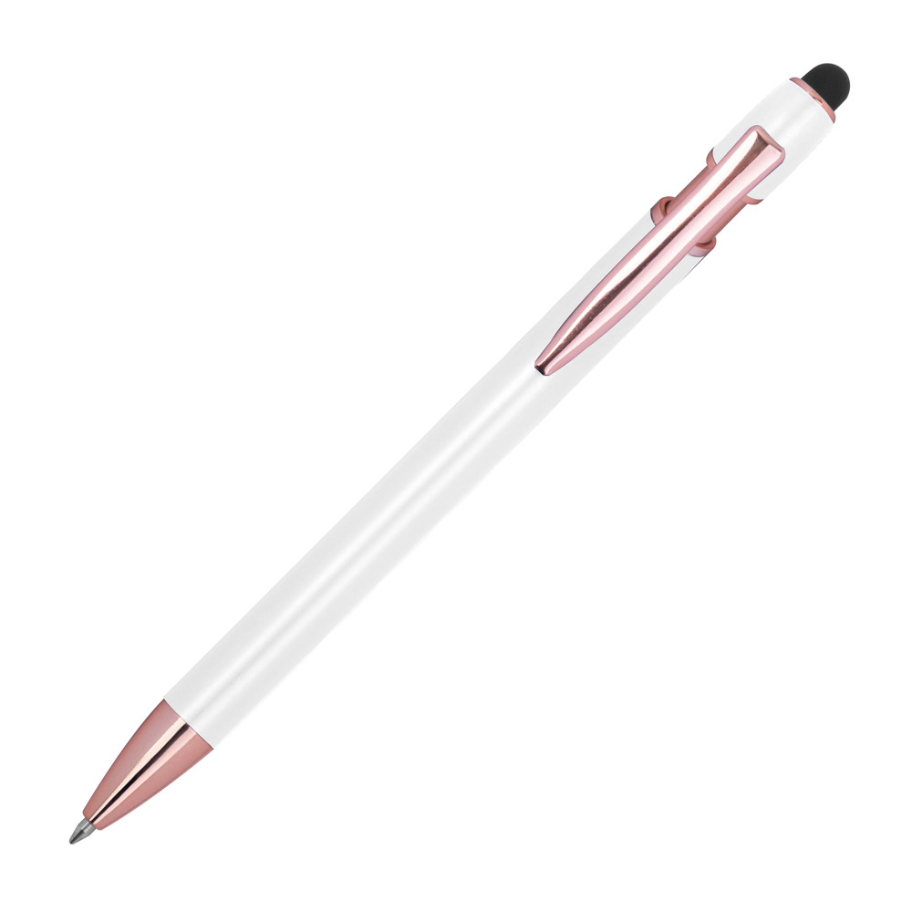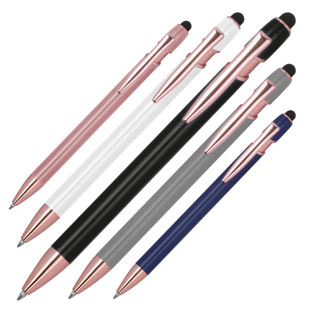 Semi Gelschreiber aus recyceltem Aluminium mit Touch-Pen und blauschreibender Großraummine (1 mm Tip). Ihre Werbung bringen wir mittels einer Lasergravur am Schaft an.