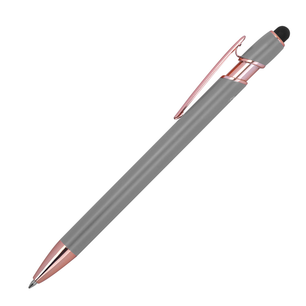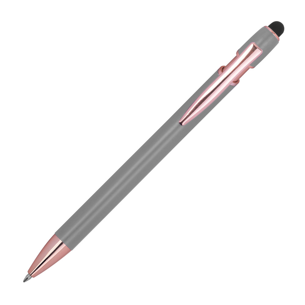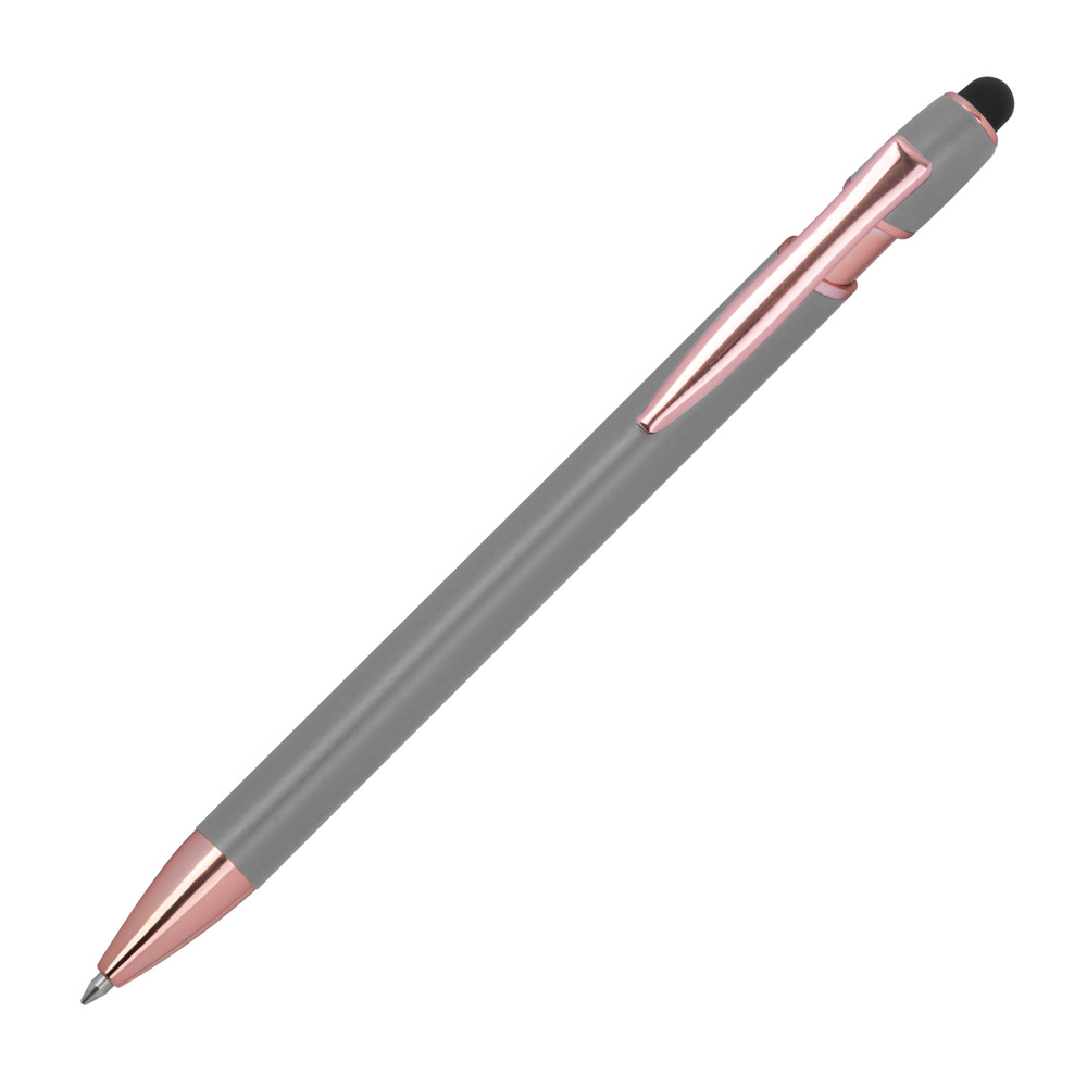 Semi Gelschreiber aus recyceltem Aluminium mit Touch-Pen und blauschreibender Großraummine (1 mm Tip). Ihre Werbung bringen wir mittels einer Lasergravur am Schaft an.