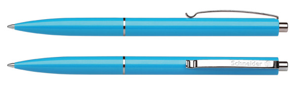 Druckkugelschreiber aus opakem Kunststoff mit glänzender Oberfläche. Clip, Zierring und Druckknopf aus Metall. Ausgestattet mit Schneider-Mine 770 M. Produkt mit finanziellem Klimabeitrag: Kompensation in Höhe der unvermeidbaren Emissionen in ein zertifiziertes Klimaschutzprojekt. Gehäuse: hellblau. Schreibfarbe: blau.
