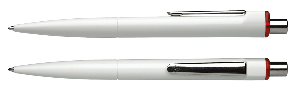 Druckkugelschreiber mit *Gehäuse aus > 62 % biobasiertem Kunststoff. Clip und Druckknopf aus Metall. Ausgestattet mit Schneider-Großraummine Express 739 M. Produkt mit finanziellem Klimabeitrag: Kompensation in Höhe der unvermeidbaren Emissionen in ein zertifiziertes Klimaschutzprojekt. Gehäuse: weiß/rot-transparent. Schreibfarbe: blau.