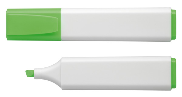 Textmarker aus opakem Kunststoff mit fein mattierter Oberfläche. Leuchtstarke, lichtbeständige Tinte. Für Normal-, Copy- und Faxpapier. Keilspitze 1+5 mm. Produkt mit finanziellem Klimabeitrag: Kompensation in Höhe der unvermeidbaren Emissionen in ein zertifiziertes Klimaschutzprojekt. Gehäuse: weiß/grün. Schreibfarbe: grün.