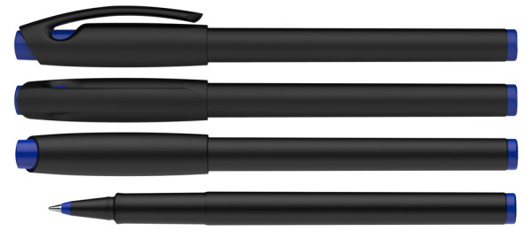 Tintenroller aus opakem Kunststoff mit fein mattierter Oberfläche. *Gehäuse zu > 85 % aus Recycling-Kunststoff. Cap off-Tinte, kann 2–3 Tage offen liegen. Metallspitze 0,6 mm. Produkt mit finanziellem Klimabeitrag: Kompensation in Höhe der unvermeidbaren Emissionen in ein zertifiziertes Klimaschutzprojekt. Gehäuse: schwarz/blau. Schreibfarbe: blau.