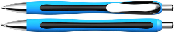 Druckkugelschreiber mit Viscoglide®-Technologie für außergewöhnlich weiches und gleitendes Schreiben. Ergonomische Form mit gummierter Oberfläche. Clip und Spitze aus Metall. Ausgestattet mit Schneider-Metall-Großraummine Slider 755 XB. Produkt mit finanziellem Klimabeitrag: Kompensation in Höhe der unvermeidbaren Emissionen in ein zertifiziertes Klimaschutzprojekt. Gehäuse: cyan/schwarz. Schreibfarbe: blau.