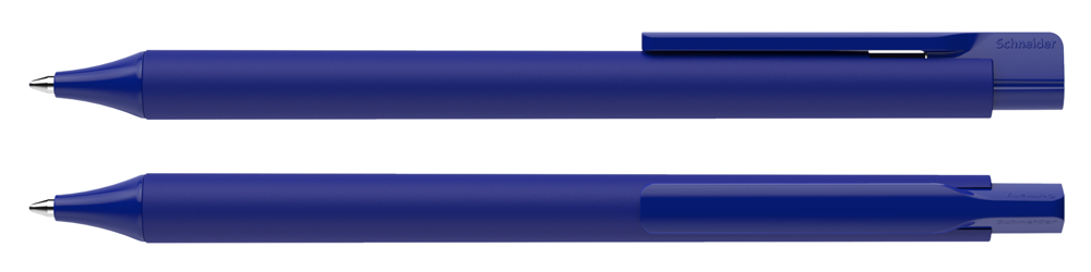 Druckkugelschreiber aus opakem Kunststoff. Oberteil mit mattierter Soft-Touch-Lackierung, Cliphülse und Spitze mit glänzender Oberfläche. Ausgestattet mit Schneider-Mine 774 M. Produkt mit finanziellem Klimabeitrag: Kompensation in Höhe der unvermeidbaren Emissionen in ein zertifiziertes Klimaschutzprojekt. Gehäuse: blau. Schreibfarbe: blau.