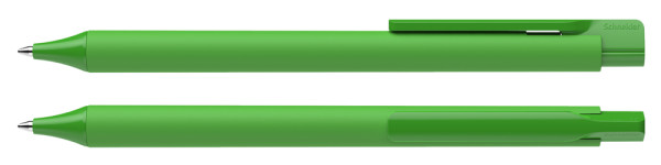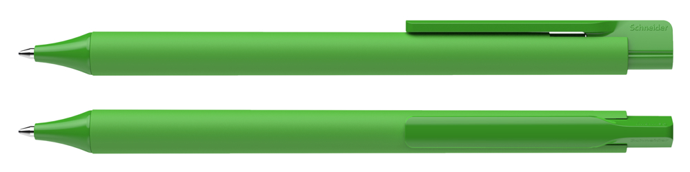 Druckkugelschreiber aus opakem Kunststoff. Oberteil mit mattierter Soft-Touch-Lackierung, Cliphülse und Spitze mit glänzender Oberfläche. Ausgestattet mit Schneider-Mine 774 M. Produkt mit finanziellem Klimabeitrag: Kompensation in Höhe der unvermeidbaren Emissionen in ein zertifiziertes Klimaschutzprojekt. Gehäuse: grün. Schreibfarbe: blau.
