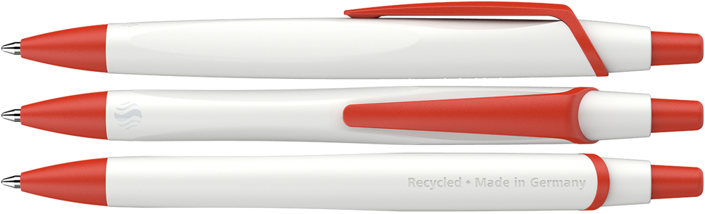 Erster Kugelschreiber, der mit dem weltweit bekanntesten Umweltzeichen "Blauer Engel" ausgezeichnet ist. Dynamisches Design mit elegant matt schimmernder Oberfläche. Umwelt- und ressourcenschonend mit einem *Gehäuse aus 92 % recyceltem Kunststoff hergestellt. Auswechselbare Großraummine Eco 725 M mit einem Gehäuse aus 95 % recyceltem Kunststoff. Produkt mit finanziellem Klimabeitrag: Kompensation in Höhe der unvermeidbaren Emissionen in ein zertifiziertes Klimaschutzprojekt. Gehäuse: weiß/rot. Schreibfarbe: blau.