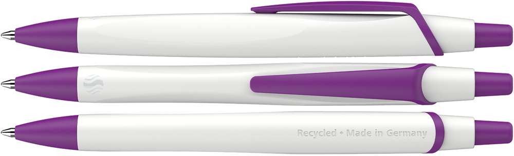Erster Kugelschreiber, der mit dem weltweit bekanntesten Umweltzeichen "Blauer Engel" ausgezeichnet ist. Dynamisches Design mit elegant matt schimmernder Oberfläche. Umwelt- und ressourcenschonend mit einem *Gehäuse aus 92 % recyceltem Kunststoff hergestellt. Auswechselbare Großraummine Eco 725 M mit einem Gehäuse aus 95 % recyceltem Kunststoff. Produkt mit finanziellem Klimabeitrag: Kompensation in Höhe der unvermeidbaren Emissionen in ein zertifiziertes Klimaschutzprojekt. Gehäuse: weiß/violett. Schreibfarbe: blau.