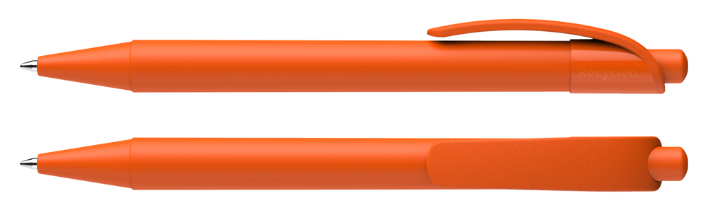 Druckkugelschreiber aus opakem Kunststoff mit fein mattierter Oberfläche. *Gehäuse zu > 90 % aus Recycling-Kunststoff. Ausgestattet mit Schneider-Mine 774 M. Produkt mit finanziellem Klimabeitrag: Kompensation in Höhe der unvermeidbaren Emissionen in ein zertifiziertes Klimaschutzprojekt. Gehäuse: orange. Schreibfarbe: blau.