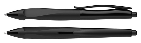 Druckkugelschreiber aus transparentem oder opakem Kunststoff, glänzender Oberfläche und einer rutschfest gummierten Dreikant-Griffzone. Ausgestattet mit Schneider-Mine 774 M. Produkt mit finanziellem Klimabeitrag: Kompensation in Höhe der unvermeidbaren Emissionen in ein zertifiziertes Klimaschutzprojekt. Gehäuse: schwarz opak. Schreibfarbe: schwarz.