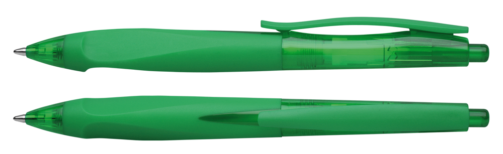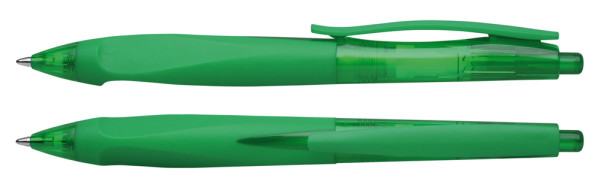 Druckkugelschreiber aus transparentem oder opakem Kunststoff, glänzender Oberfläche und einer rutschfest gummierten Dreikant-Griffzone. Ausgestattet mit Schneider-Mine 774 M. Produkt mit finanziellem Klimabeitrag: Kompensation in Höhe der unvermeidbaren Emissionen in ein zertifiziertes Klimaschutzprojekt. Gehäuse: grün-transparent. Schreibfarbe: blau.