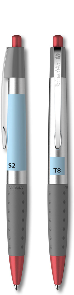 Druckkugelschreiber aus Kunststoff mit hochwertiger glänzender Silberlackierung und einer rutschfest gummierten Griffzone. Clip aus stabilem Edelstahl. Ausgestattet mit Schneider-Mine 774 M. Produkt mit finanziellem Klimabeitrag: Kompensation in Höhe der unvermeidbaren Emissionen in ein zertifiziertes Klimaschutzprojekt. Gehäuse: blau-transparent. Schreibfarbe: blau.