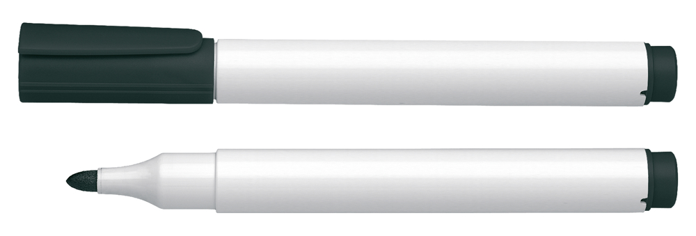 Permanent-Marker aus opakem Kunststoff mit glänzender Oberfläche. *Gehäuse zu 95 % aus Recycling-Kunststoff. Für Karton, Papier, Kunststoff, Glas, Metall und Holz. Wasserfest, lichtbeständig, schnelltrocknend. Cap off-Tinte, kann 2–3 Tage offen liegen. Rundspitze 1–3 mm. Produkt mit finanziellem Klimabeitrag: Kompensation in Höhe der unvermeidbaren Emissionen in ein zertifiziertes Klimaschutzprojekt. Gehäuse: weiß/schwarz. Schreibfarbe: schwarz.