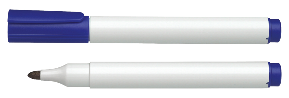 Permanent-Marker aus opakem Kunststoff mit glänzender Oberfläche. *Gehäuse zu 95 % aus Recycling-Kunststoff. Für Karton, Papier, Kunststoff, Glas, Metall und Holz. Wasserfest, lichtbeständig, schnelltrocknend. Cap off-Tinte, kann 2–3 Tage offen liegen. Rundspitze 1–3 mm. Produkt mit finanziellem Klimabeitrag: Kompensation in Höhe der unvermeidbaren Emissionen in ein zertifiziertes Klimaschutzprojekt. Gehäuse: weiß/blau. Schreibfarbe: blau.
