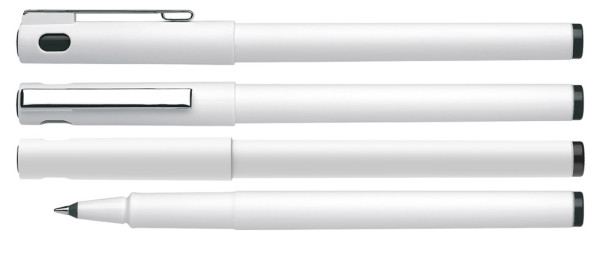 Tintenroller aus opakem Kunststoff mit fein mattierter Oberfläche. *Gehäuse zu > 85 % aus Recycling-Kunststoff. Cap-Off-Tinte, kann 2–3 Tage offen liegen. Metallclip und Metallspitze 0,6 mm. Produkt mit finanziellem Klimabeitrag: Kompensation in Höhe der unvermeidbaren Emissionen in ein zertifiziertes Klimaschutzprojekt. Gehäuse: weiß/schwarz. Schreibfarbe: schwarz.