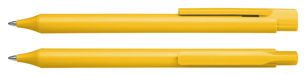 Druckkugelschreiber aus transparentem oder opakem Kunststoff mit glänzender Oberfläche. Ausgestattet mit Schneider-Mine 774 M. Produkt mit finanziellem Klimabeitrag: Kompensation in Höhe der unvermeidbaren Emissionen in ein zertifiziertes Klimaschutzprojekt. Gehäuse: gelb. Schreibfarbe: blau.