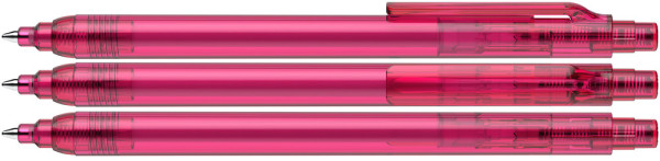 Druckkugelschreiber aus transparentem oder opakem Kunststoff mit glänzender Oberfläche. Abgestufter Drücker und Spitze. Ausgestattet mit Schneider-Mine 774 M. Produkt mit finanziellem Klimabeitrag: Kompensation in Höhe der unvermeidbaren Emissionen in ein zertifiziertes Klimaschutzprojekt. Gehäuse: pink-transparent. Schreibfarbe: blau.