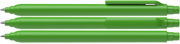 Druckkugelschreiber aus transparentem oder opakem Kunststoff mit glänzender Oberfläche. Abgestufter Drücker und Spitze. Ausgestattet mit Schneider-Mine 774 M. Produkt mit finanziellem Klimabeitrag: Kompensation in Höhe der unvermeidbaren Emissionen in ein zertifiziertes Klimaschutzprojekt. Gehäuse: grün. Schreibfarbe: blau.
