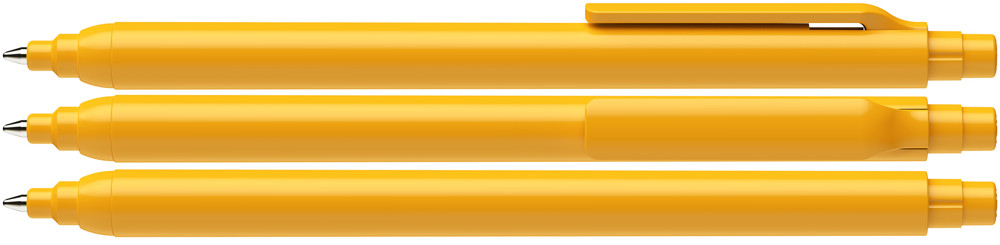 Druckkugelschreiber aus transparentem oder opakem Kunststoff mit glänzender Oberfläche. Abgestufter Drücker und Spitze. Ausgestattet mit Schneider-Mine 774 M. Produkt mit finanziellem Klimabeitrag: Kompensation in Höhe der unvermeidbaren Emissionen in ein zertifiziertes Klimaschutzprojekt. Gehäuse: gelb. Schreibfarbe: blau.