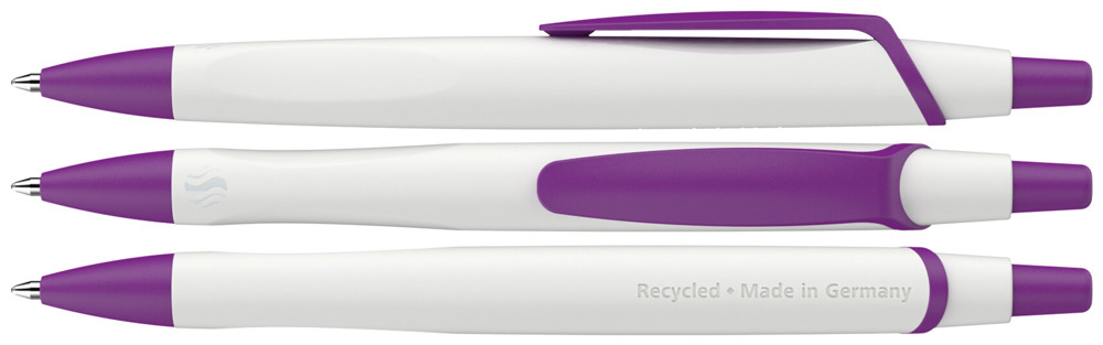 Erster Kugelschreiber, der mit dem weltweit bekanntesten Umweltzeichen "Blauer Engel" ausgezeichnet ist. Dynamisches Design mit elegant matt schimmernder Oberfläche. Variante „Max“ mit größerer Druckfläche. Umwelt- und ressourcenschonend mit einem *Gehäuse aus 92 % recyceltem Kunststoff hergestellt. Auswechselbare Großraummine Eco 725 M mit einem Gehäuse aus 95 % recyceltem Kunststoff. Produkt mit finanziellem Klimabeitrag: Kompensation in Höhe der unvermeidbaren Emissionen in ein zertifiziertes Klimaschutzprojekt. Gehäuse: weiß/lila. Schreibfarbe: blau.
