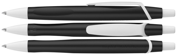 Erster Kugelschreiber, der mit dem weltweit bekanntesten Umweltzeichen "Blauer Engel" ausgezeichnet ist. Dynamisches Design mit elegant matt schimmernder Oberfläche. Variante „Max“ mit größerer Druckfläche. Umwelt- und ressourcenschonend mit einem *Gehäuse aus 92 % recyceltem Kunststoff hergestellt. Auswechselbare Großraummine Eco 725 M mit einem Gehäuse aus 95 % recyceltem Kunststoff. Produkt mit finanziellem Klimabeitrag: Kompensation in Höhe der unvermeidbaren Emissionen in ein zertifiziertes Klimaschutzprojekt. Gehäuse: schwarz/weiß. Schreibfarbe: blau.