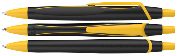 Erster Kugelschreiber, der mit dem weltweit bekanntesten Umweltzeichen "Blauer Engel" ausgezeichnet ist. Dynamisches Design mit elegant matt schimmernder Oberfläche. Variante „Line“ mit farbiger Designlinie. Umwelt- und ressourcenschonend mit einem *Gehäuse aus 92 % recyceltem Kunststoff hergestellt. Auswechselbare Großraummine Eco 725 M mit einem Gehäuse aus 95 % recyceltem Kunststoff. Produkt mit finanziellem Klimabeitrag: Kompensation in Höhe der unvermeidbaren Emissionen in ein zertifiziertes Klimaschutzprojekt. Gehäuse: schwarz/gelb. Schreibfarbe: blau.