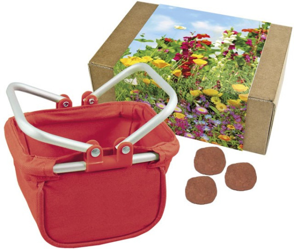 Der Utensilo „Wonderball“ mit handgefertigten Tonkugeln und Blumensamen ist ein nachhaltiges und werbewirksames Präsent. Einfach die Kugeln auf Grünflächen oder Balkonkästen legen, wässern und bunte Blumen sprießen. Der Werbedruck erfolgt auf dem Standardmotiv, ab 100 Stück ist eine individuelle Banderolengestaltung möglich.
