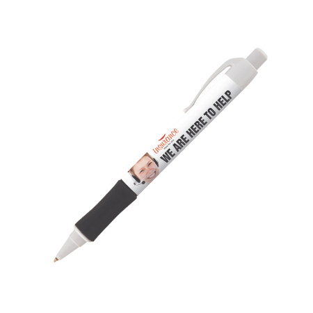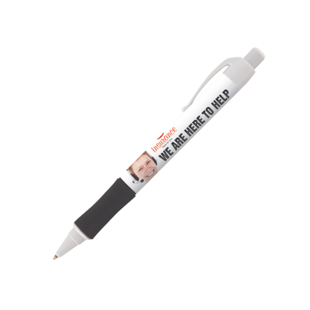 Der KEA Kugelschreiber ist ein auffälliger Stift mit einer farbigen Griffzone und Beschlägen, der vollständig (all over) in Full Colour mittels 360°-Digitaldruck/Folientransferdruck bedruckt werden kann.