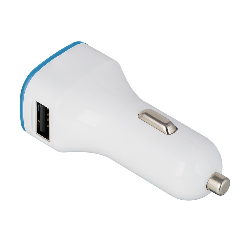 Der intelligente 2-in-1-Autoladeadapter ist für PKW und LKW anwendbar. Mit einer Ausgangsleistung bis zu DC 5V und 3.1A (bei Anschluss auf zwei Geräte verteilt sich die Leistung auf beide). Die intelligente Ladesteuerung weiß genau, wie viel Strom Ihr Gerät zum Laden benötigt. Das integrierte Schutzsystem bewahrt vor Überspannung, Überhitzung und Kurzschluss. Der umlaufende Farbring an der Werbefläche wird per LED hinterleuchtet.