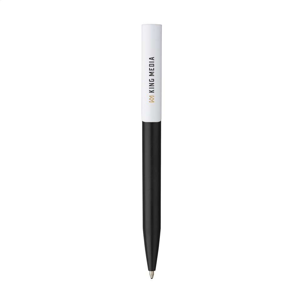 Blauschreibender Kugelschreiber mit einem Gehäuse aus 100% recyceltem ABS. Der Clip/Druckknopf ist mit einem auffälligen farblichen Akzent gestaltet und bietet Platz für einen großzügigen, digitalen Vollfarbaufdruck. GRS-zertifiziert.