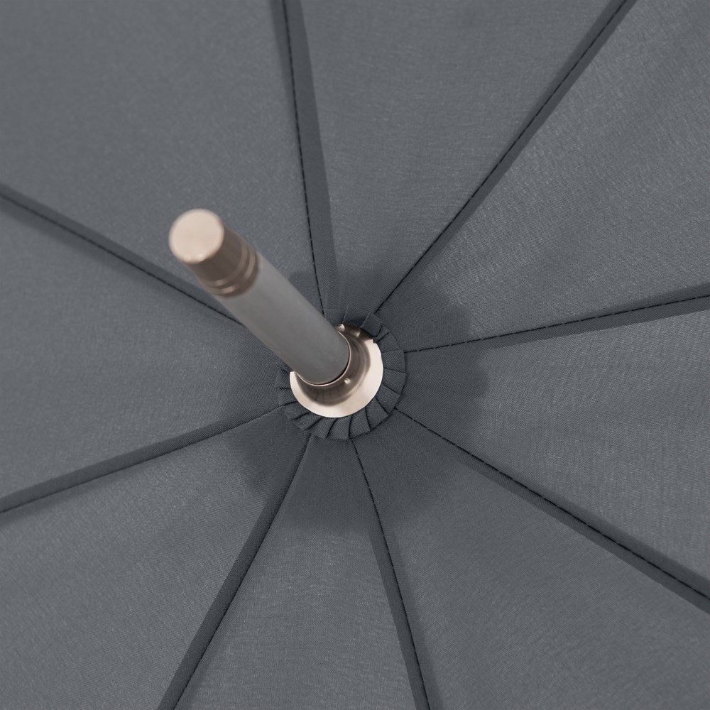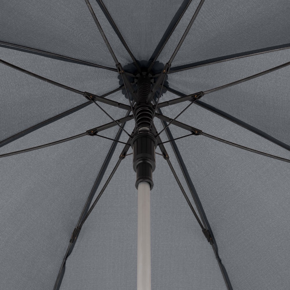 Durch seinen Aluminiumstock und den flexiblen Fiberglasschienen ist dieser Langschirm mit Automatikfunktion ein extrem leichter und windsicherer Begleiter. Das Erscheinungsbild dieses Leichtgewichts wird durch einen klassischen Rundhakengriff, welcher optimalen Tragekomfort bietet, abgerundet.
