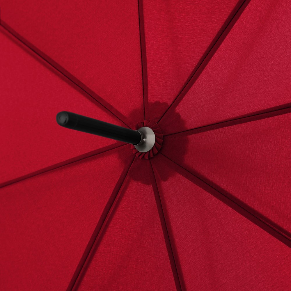 Der Langschirm mit Automatikfunktion besticht durch sein schwarzes Gestell und Fieberglasschienen welche ihn zu einem sehr robusten und windstabilen Begleiter machen. Sein modischer Stabgriff liegt gut in der Hand und bietet Kunden die Möglichkeit, ein individuell gestaltetes 3D-Sticker auf der Griffunterseite anzubringen.