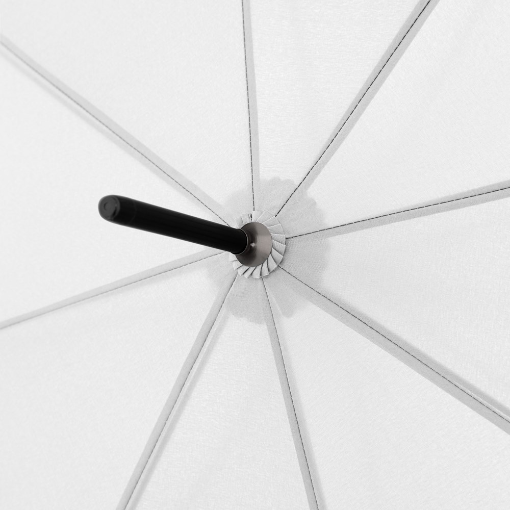 Der Langschirm mit Automatikfunktion besticht durch sein schwarzes Gestell und Fieberglasschienen welche ihn zu einem sehr robusten und windstabilen Begleiter machen. Sein modischer Stabgriff liegt gut in der Hand und bietet Kunden die Möglichkeit, ein individuell gestaltetes 3D-Sticker auf der Griffunterseite anzubringen.