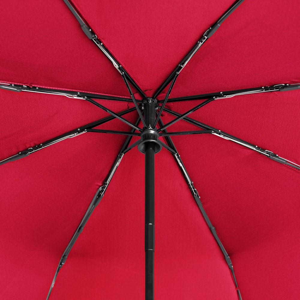 Material: Polyester Pongee, Stahlstock, Fiberglas/Alu-Teilschienen, mattschwarzer Kunststoffgriff mit integrierter Auslösetaste, mattschwarzer Kunststoffgriff mit integrierter Drucktaste