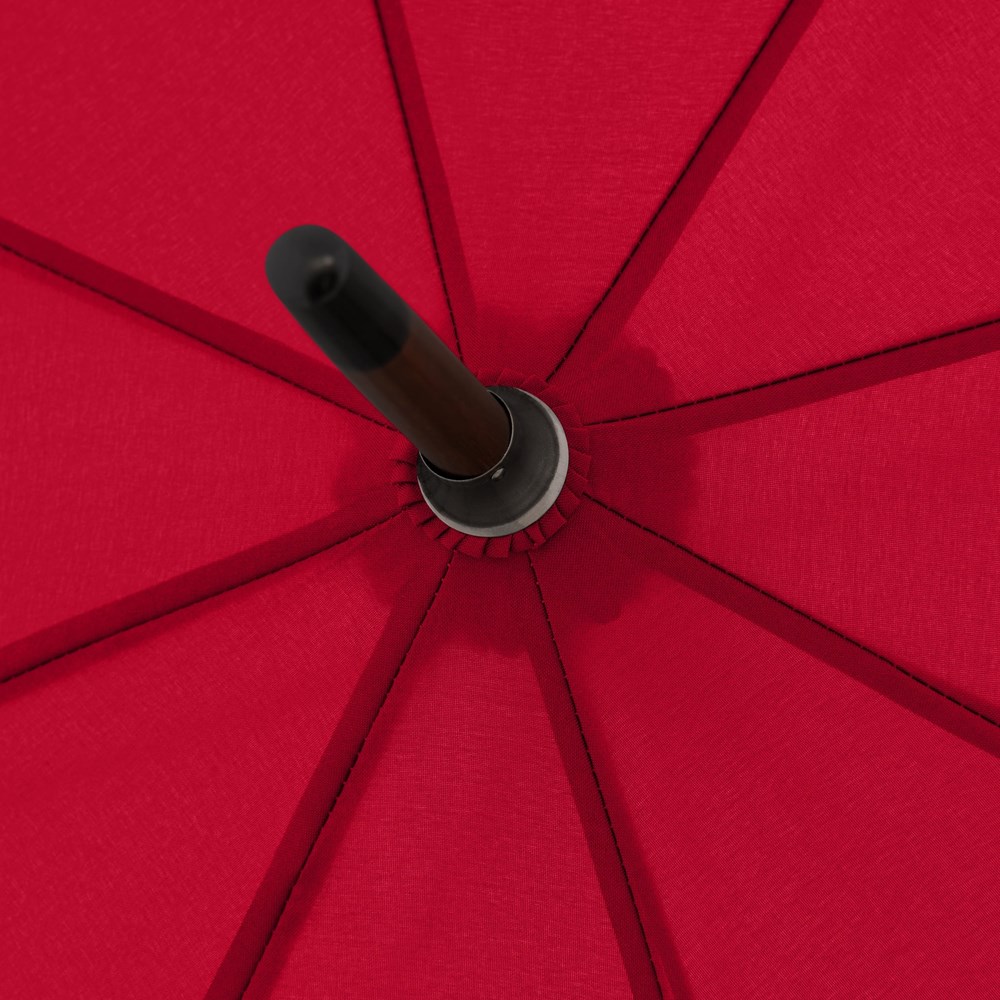 Zeitloser, klassischer Langschirm mit edlem Holzstock und flexiblen Fiberglaselementen für hohe Stabilität. Der elegante Rundhakengriff aus Holz liegt angenehm in der Hand und verleiht dem Schirm eine stilvolle Optik.