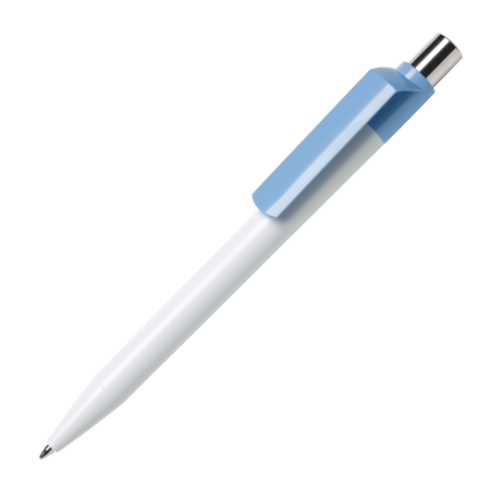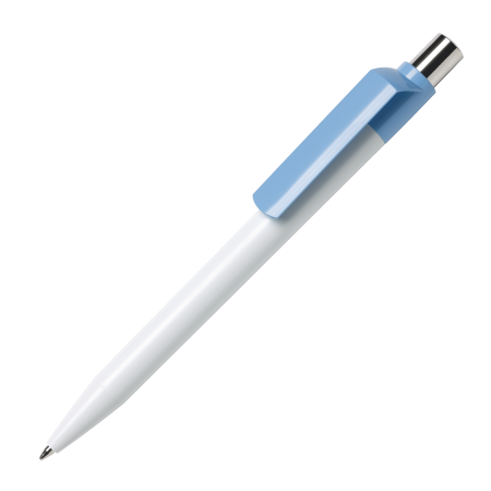 Das Gehäuse des Kugelschreibers ist aus hochglänzendem, solidem, weißem ABS gefertigt, der Drücker aus hochglänzendem Metall. Drücker-Element und Clip sind in 20 Farben lieferbar, die bereits ab 2.000 Stück untereinander kombinierbar sind. Er ist mit einer blauschreibenden Großraummine ausgestattet.