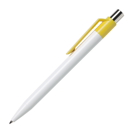 Das Gehäuse des Kugelschreibers ist aus hochglänzendem, solidem, weißem ABS gefertigt, der Drücker aus hochglänzendem Metall. Drücker-Element und Clip sind in 20 Farben lieferbar, die bereits ab 2.000 Stück untereinander kombinierbar sind. Er ist mit einer blauschreibenden Großraummine ausgestattet.