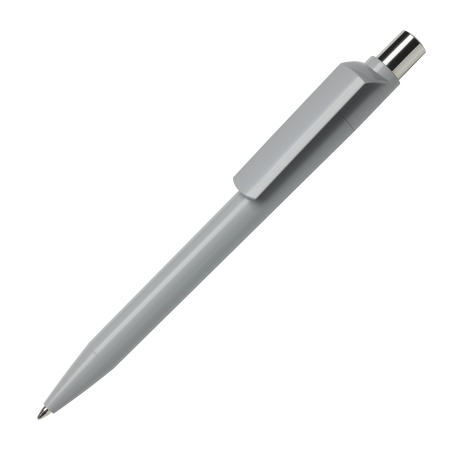 Das Gehäuse, das Drücker-Element und der Clip sind in 21 soliden Farben lieferbar, die bereits ab 2.000 Stück untereinander kombinierbar sind. Der Drücker ist aus glänzendem Metall gefertigt. Der Kugelschreiber ist mit einer blauschreibenden Großraummine ausgestattet.
