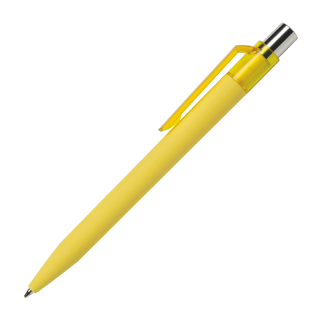 Das gummierte Gehäuse, das Drücker-Element und der transparente Clip sind in 15 Farben lieferbar; bereits ab 2.000 Stück können alle Teile des Kugelschreibers in den unterschiedlichen Farben kombiniert werden. Der Drücker ist aus glänzendem Metall gefertigt. Er ist mit einer blauschreibenden Großraummine ausgestattet. Dieser Kugelschreiber kann ausschließlich auf dem Clip bedruckt werden!