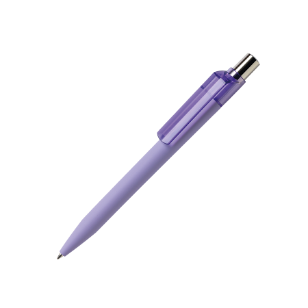 Das gummierte Gehäuse, das Drücker-Element und der transparente Clip sind in 15 Farben lieferbar; bereits ab 2.000 Stück können alle Teile des Kugelschreibers in den unterschiedlichen Farben kombiniert werden. Der Drücker ist aus glänzendem Metall gefertigt. Er ist mit einer blauschreibenden Großraummine ausgestattet. Dieser Kugelschreiber kann ausschließlich auf dem Clip bedruckt werden!